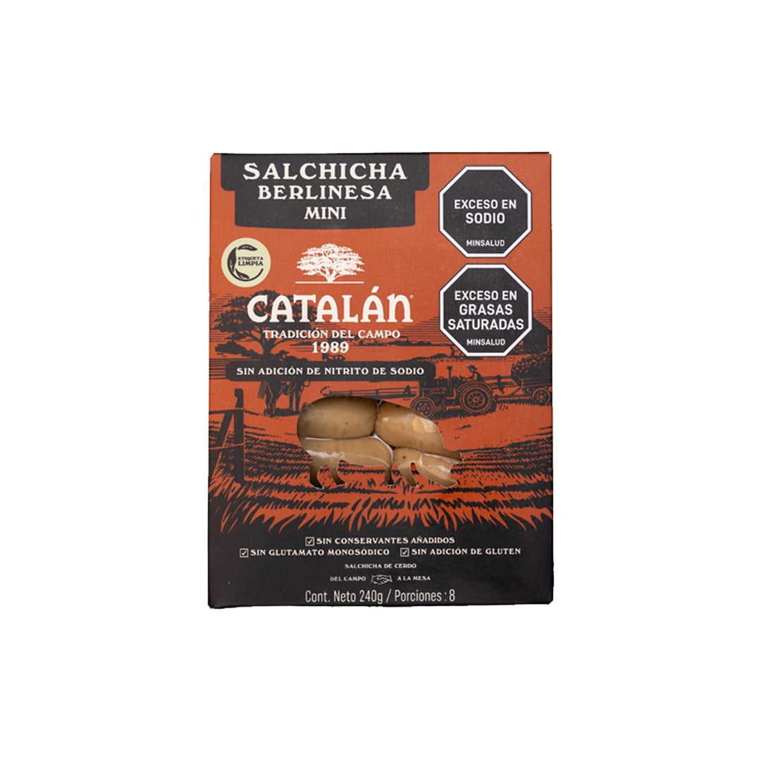 Ingredientes: carne de cerdo, grasa de cerdo, agua, aroma natural (frutas y especias), sal, proteína de cerdo, sabor natural (salado), regulador de acidez (polifosfato de sodio).