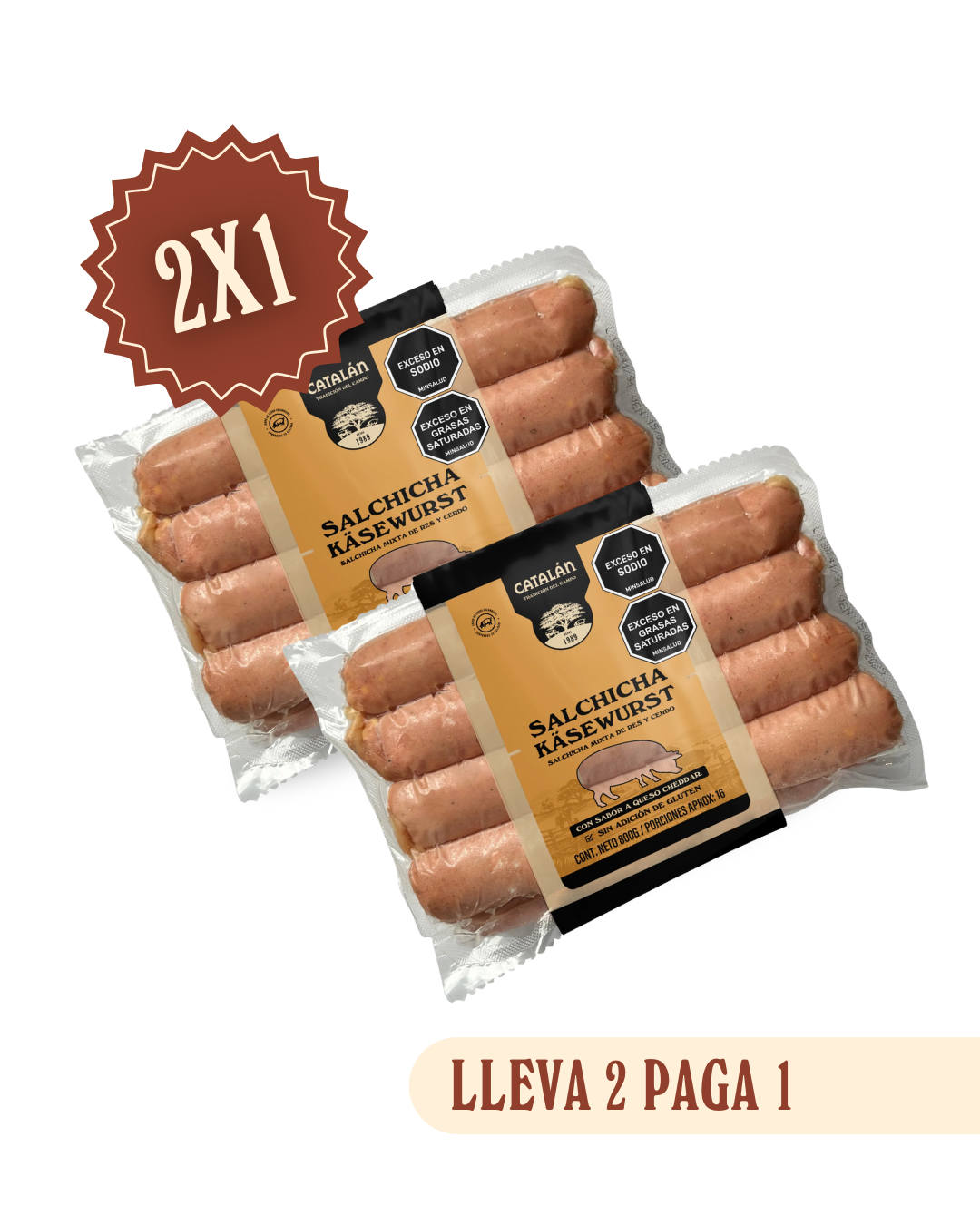 ¡Disfruta de nuestra auténtica salchicha al estilo alemán! Elaborada con 100% carne de cerdo y res, con un delicioso sabor a queso cheddar que se derrite en tu bocal.